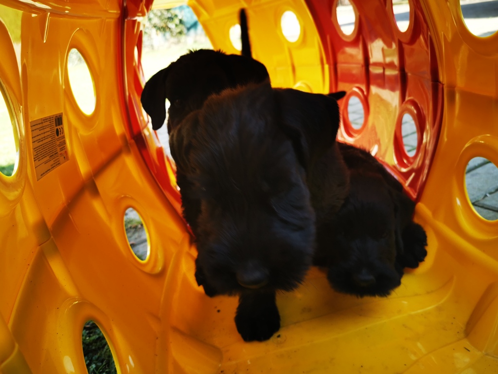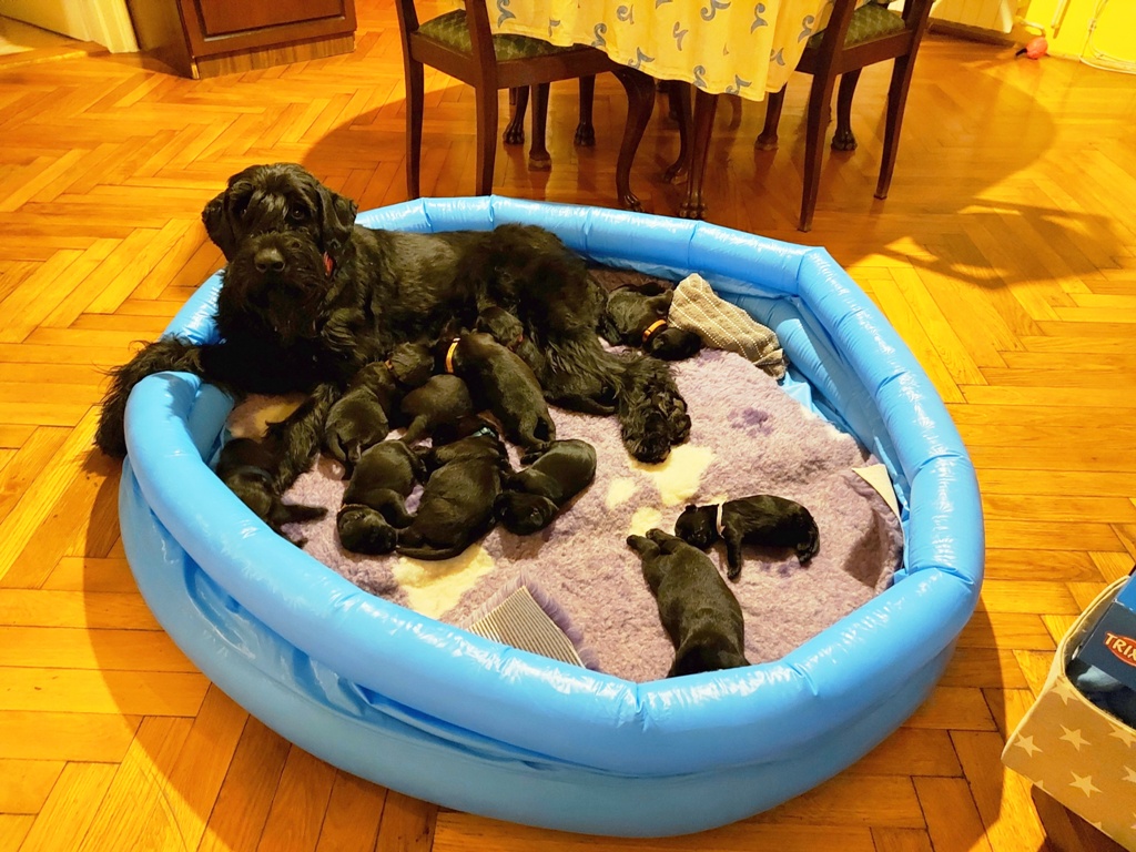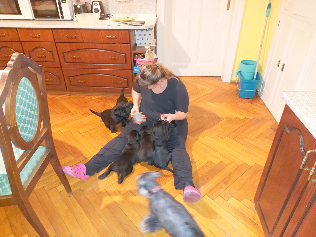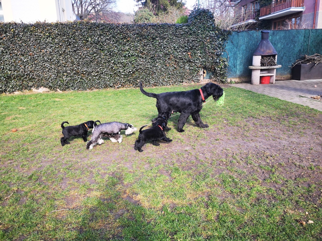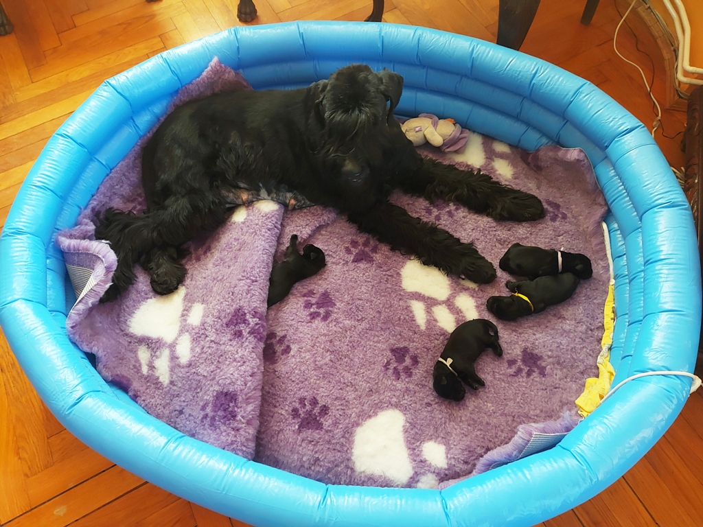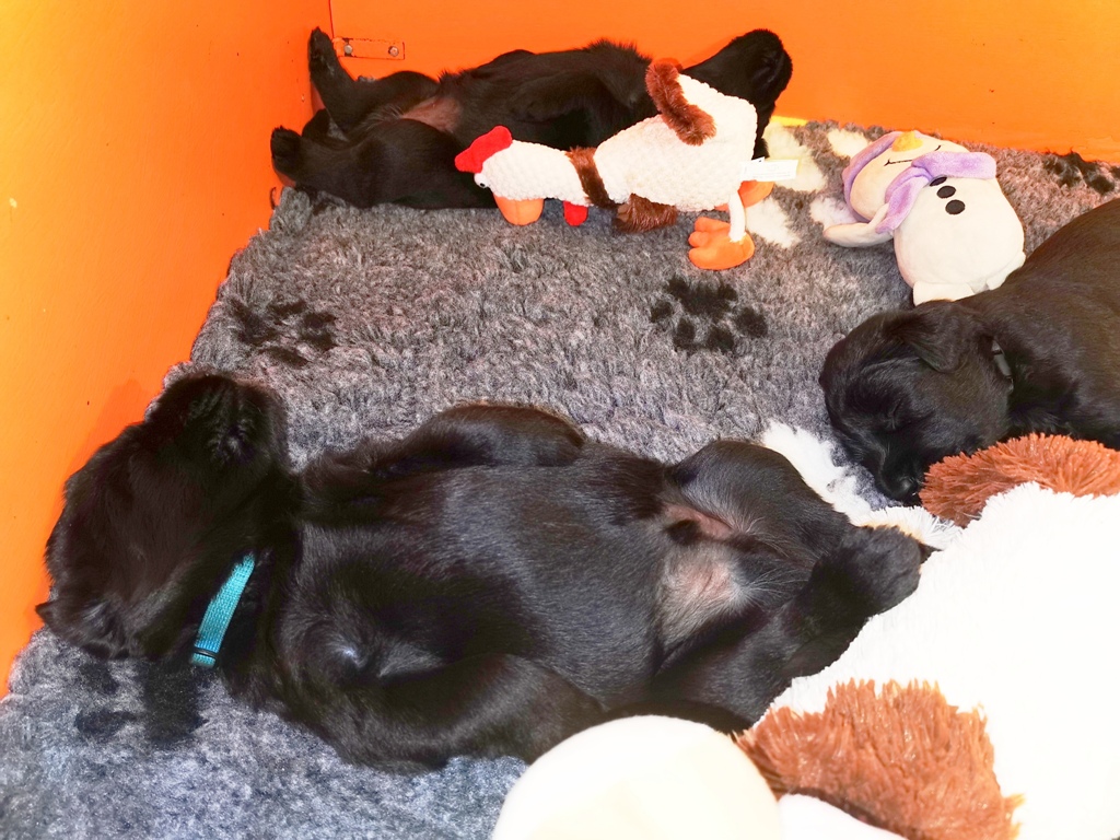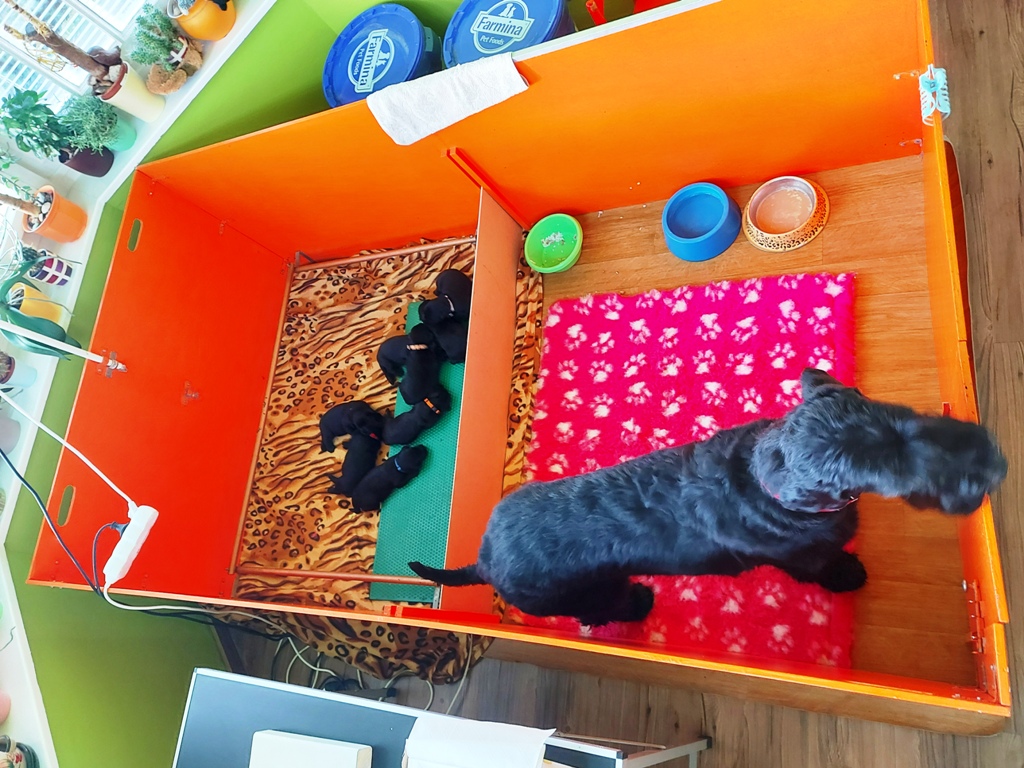 A je to tady. V naší chovatelské stanici se poprvé narodila štěňátka malých černostříbřitých kníračů. *23.7.2023, dva pejsci a dvě fenky. Asterix, Apach, Aloha, Aiva
