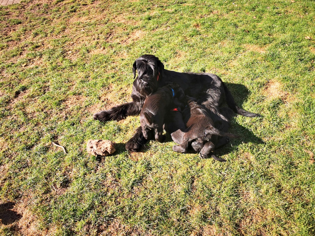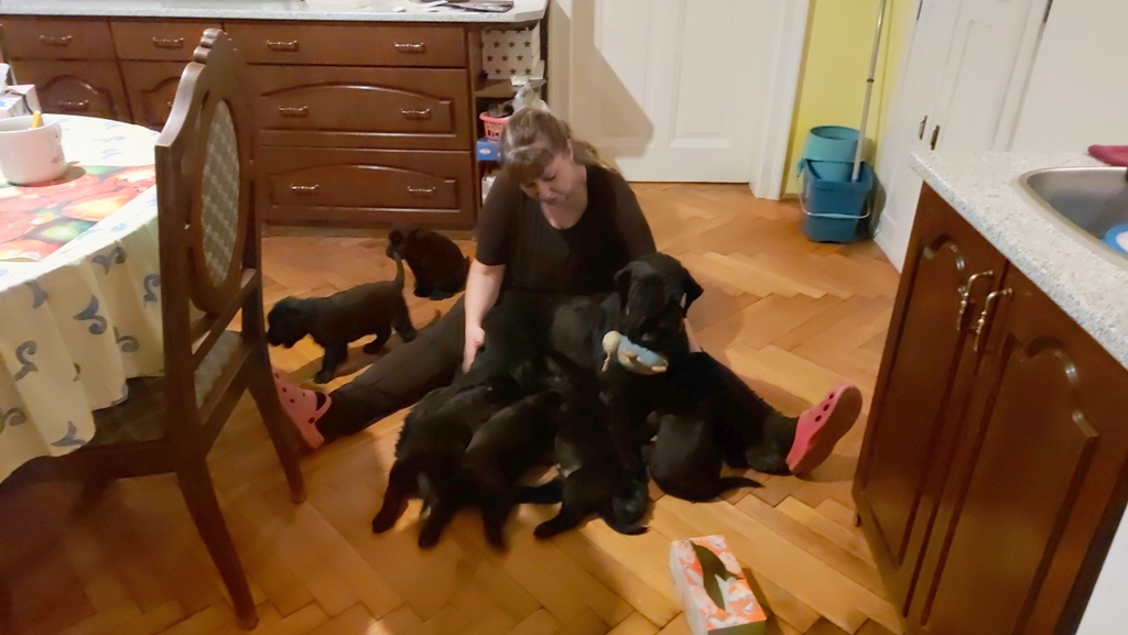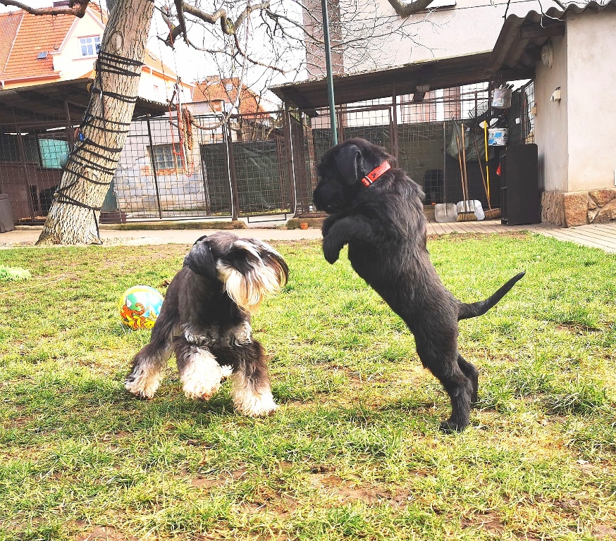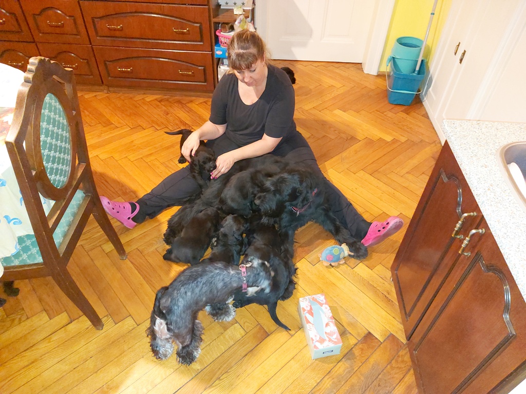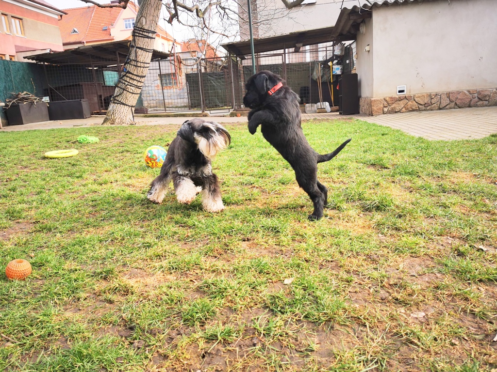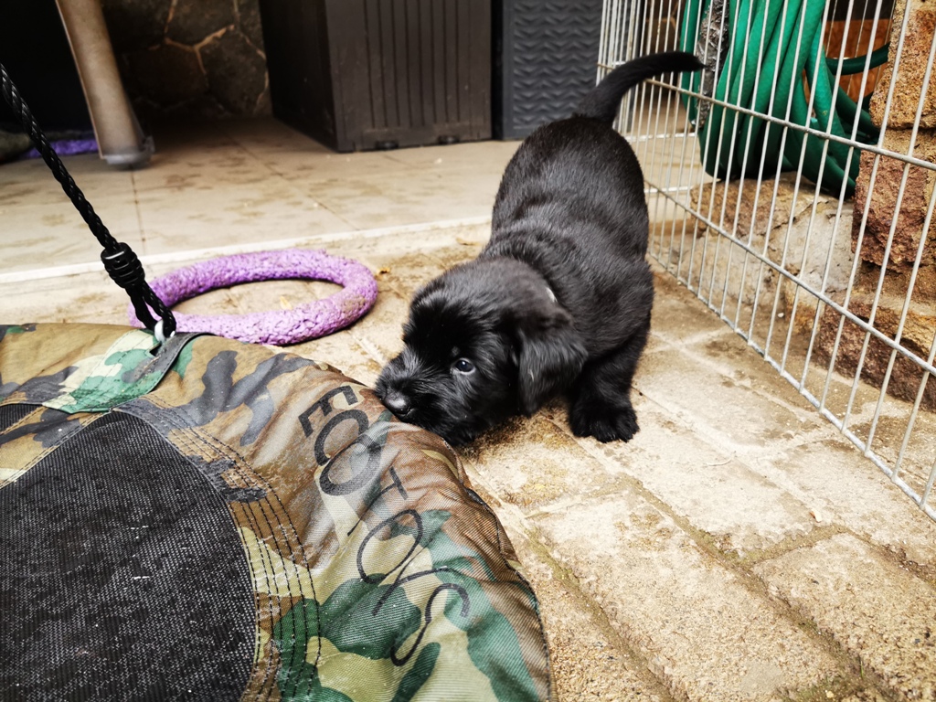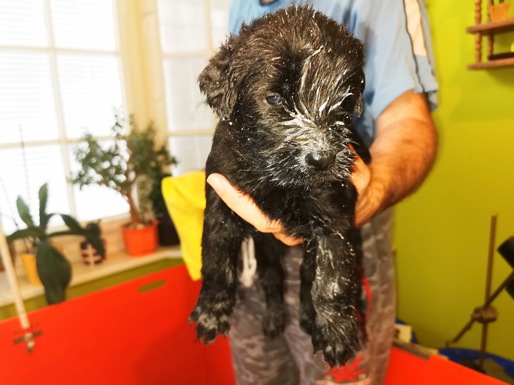 A je to tady. V naší chovatelské stanici se poprvé narodila štěňátka malých černostříbřitých kníračů. *23.7.2023, dva pejsci a dvě fenky. Asterix, Apach, Aloha, Aiva