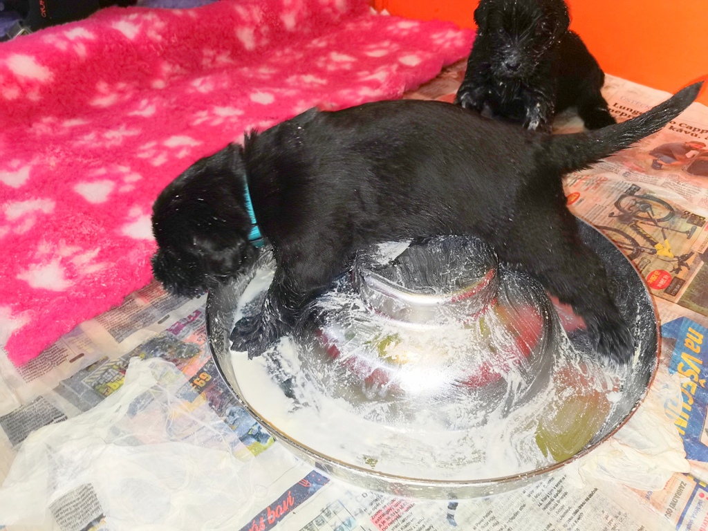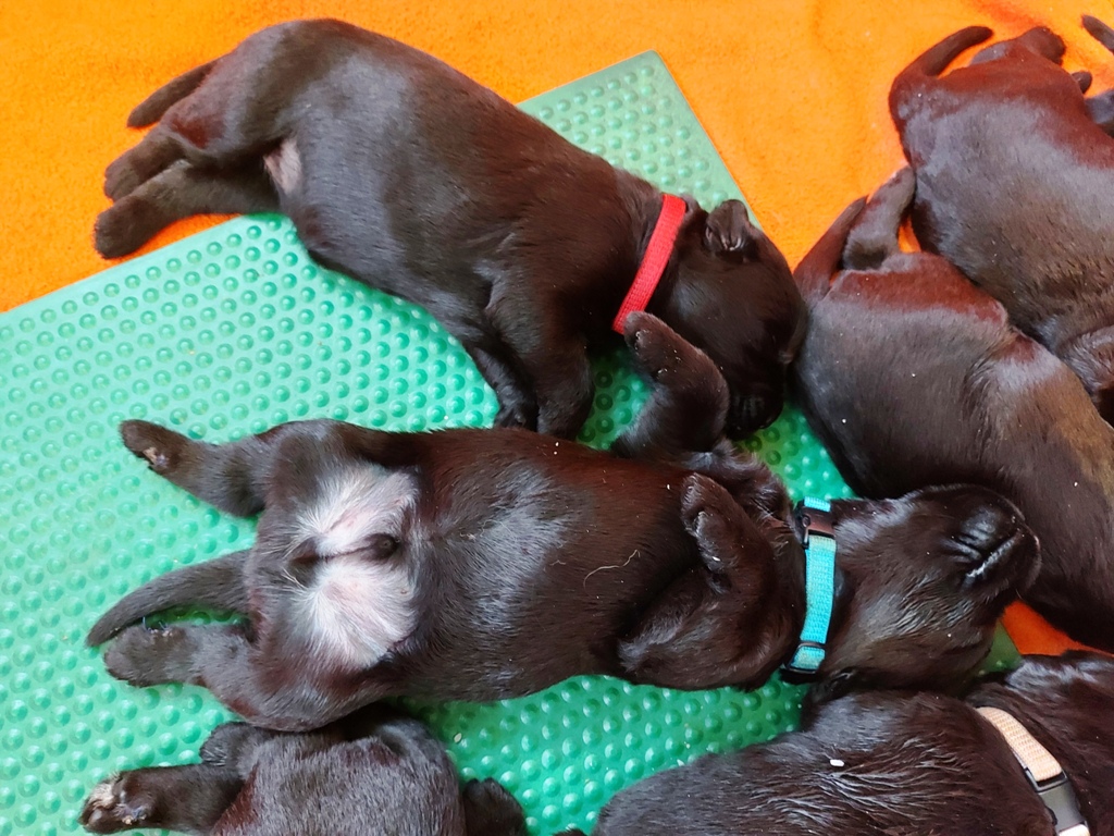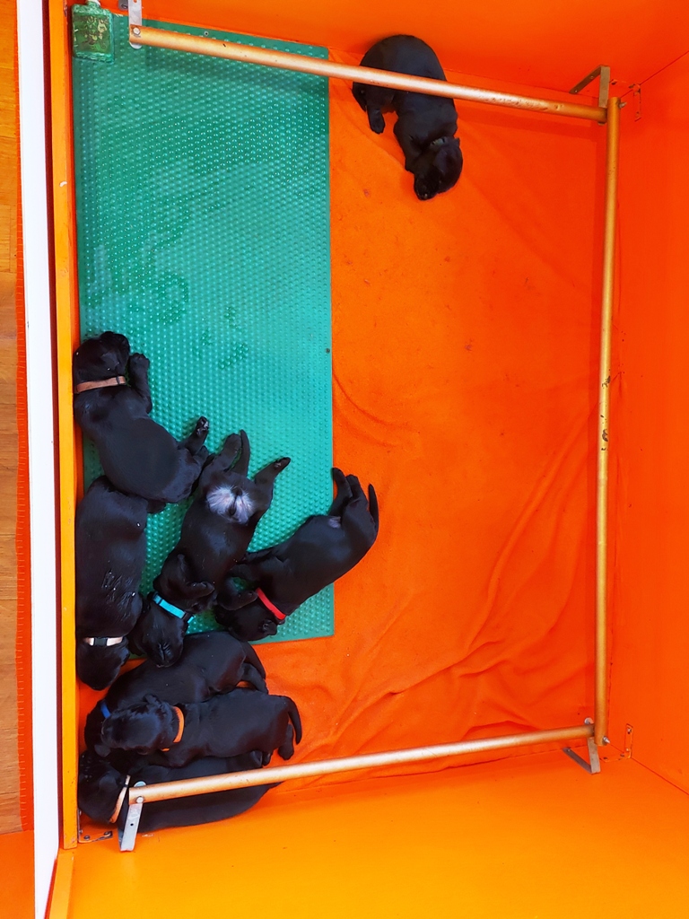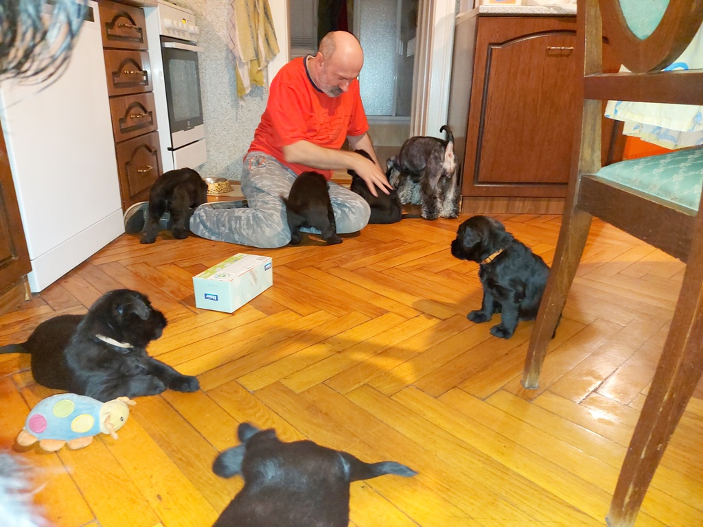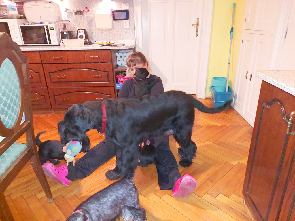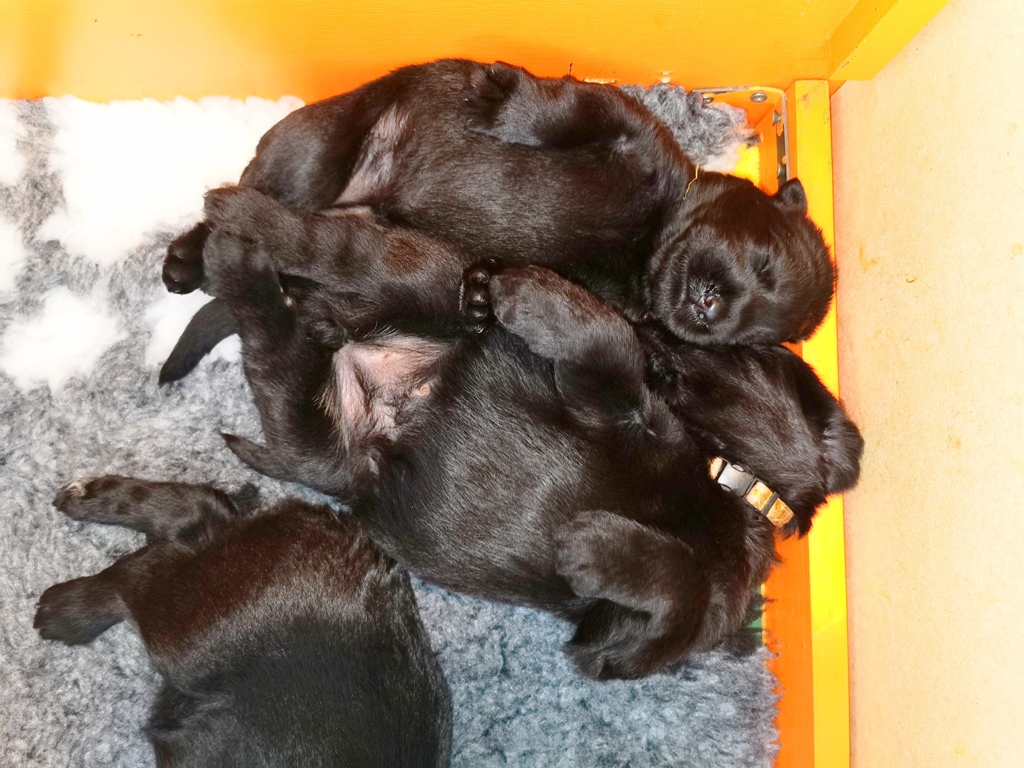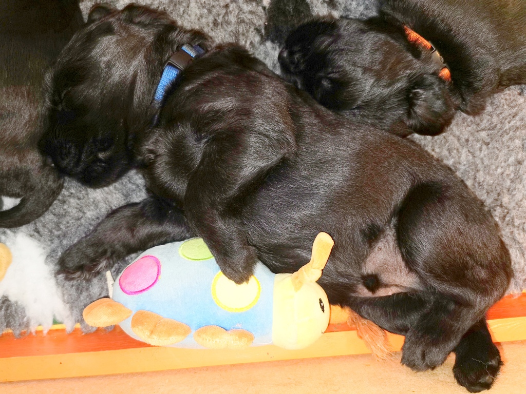 A je to tady. V naší chovatelské stanici se poprvé narodila štěňátka malých černostříbřitých kníračů. *23.7.2023, dva pejsci a dvě fenky. Asterix, Apach, Aloha, Aiva