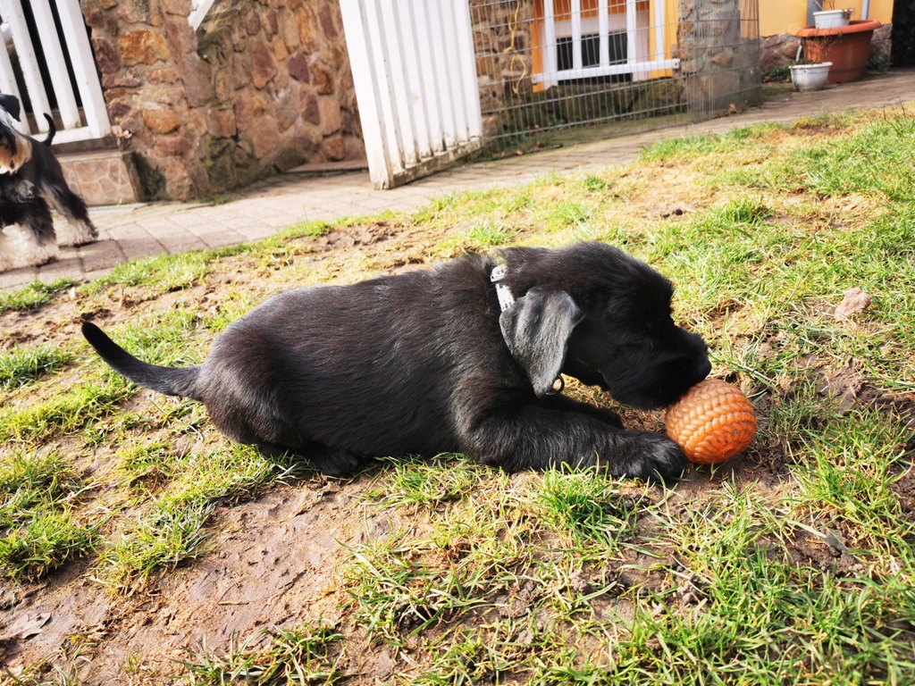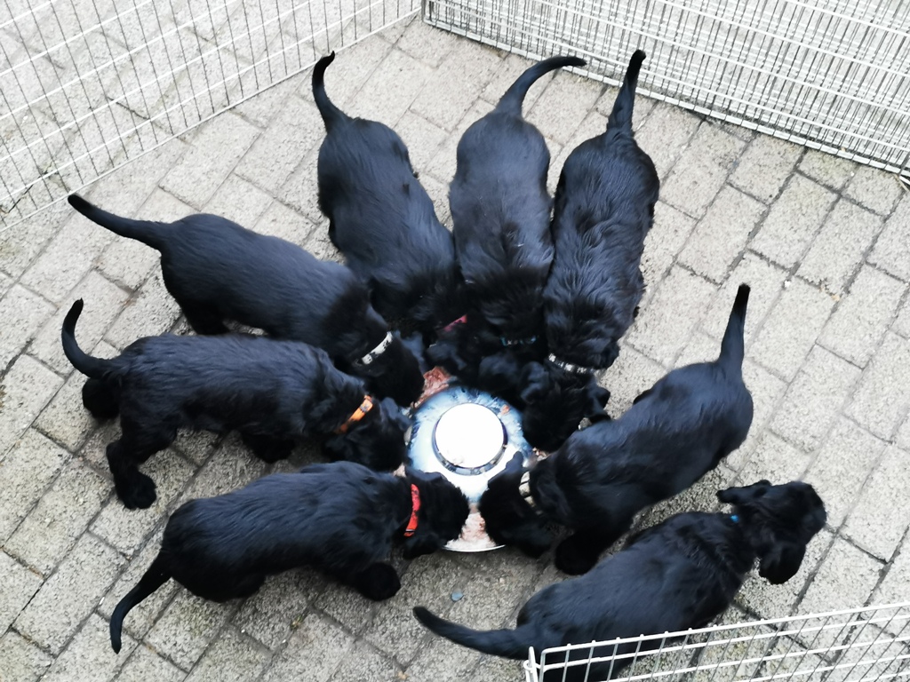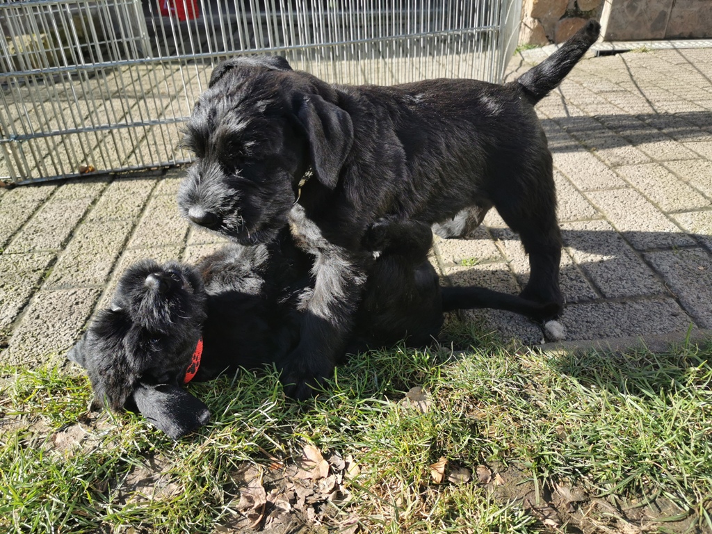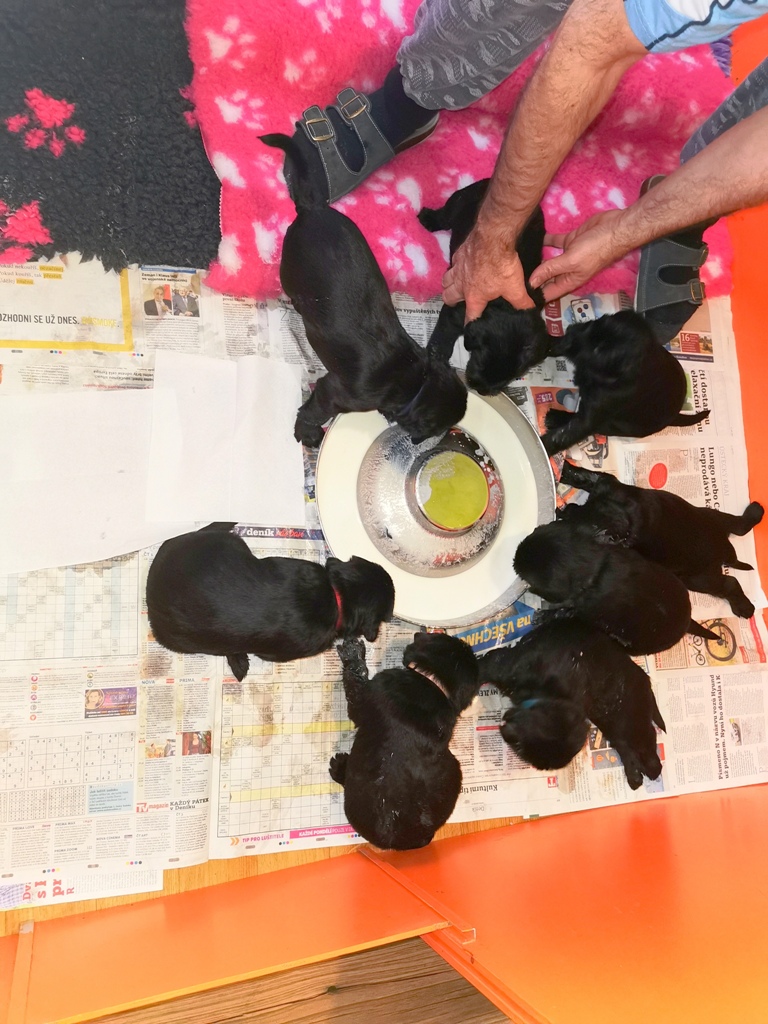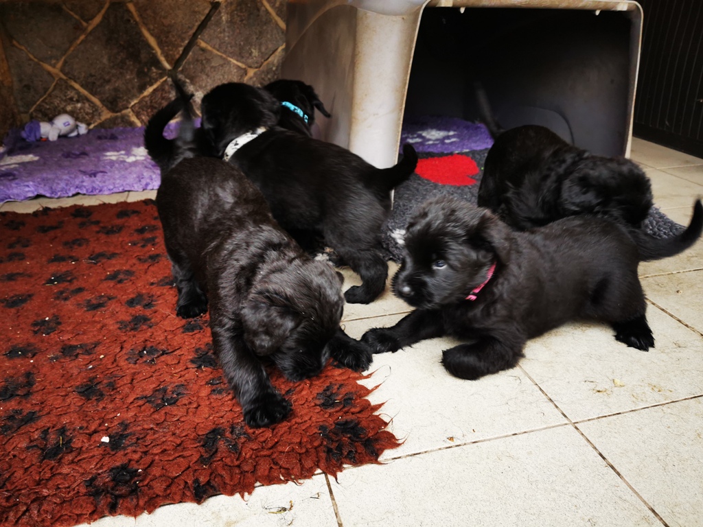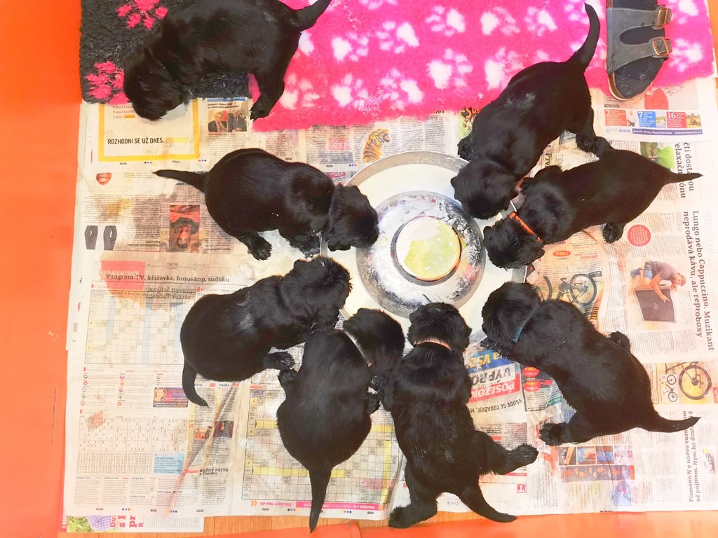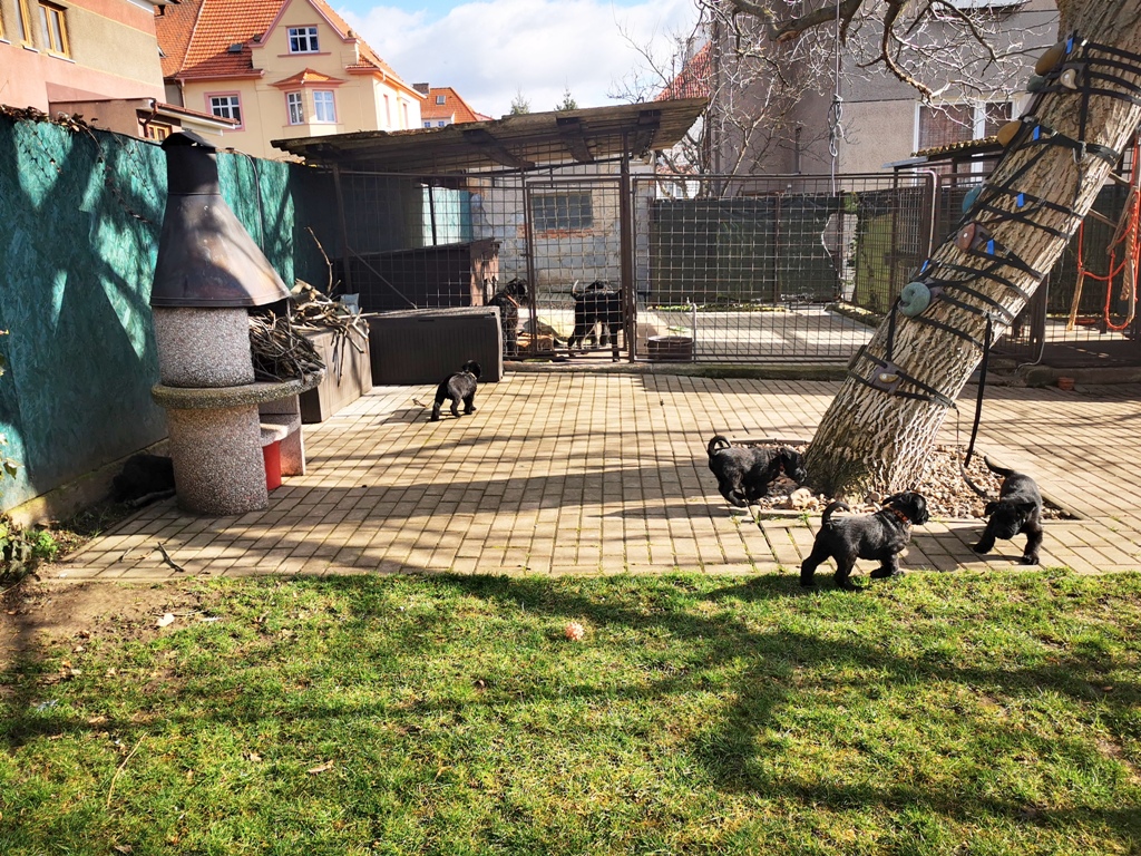 Štěňátka velkých černých kníračů už jsou v nových domovech.