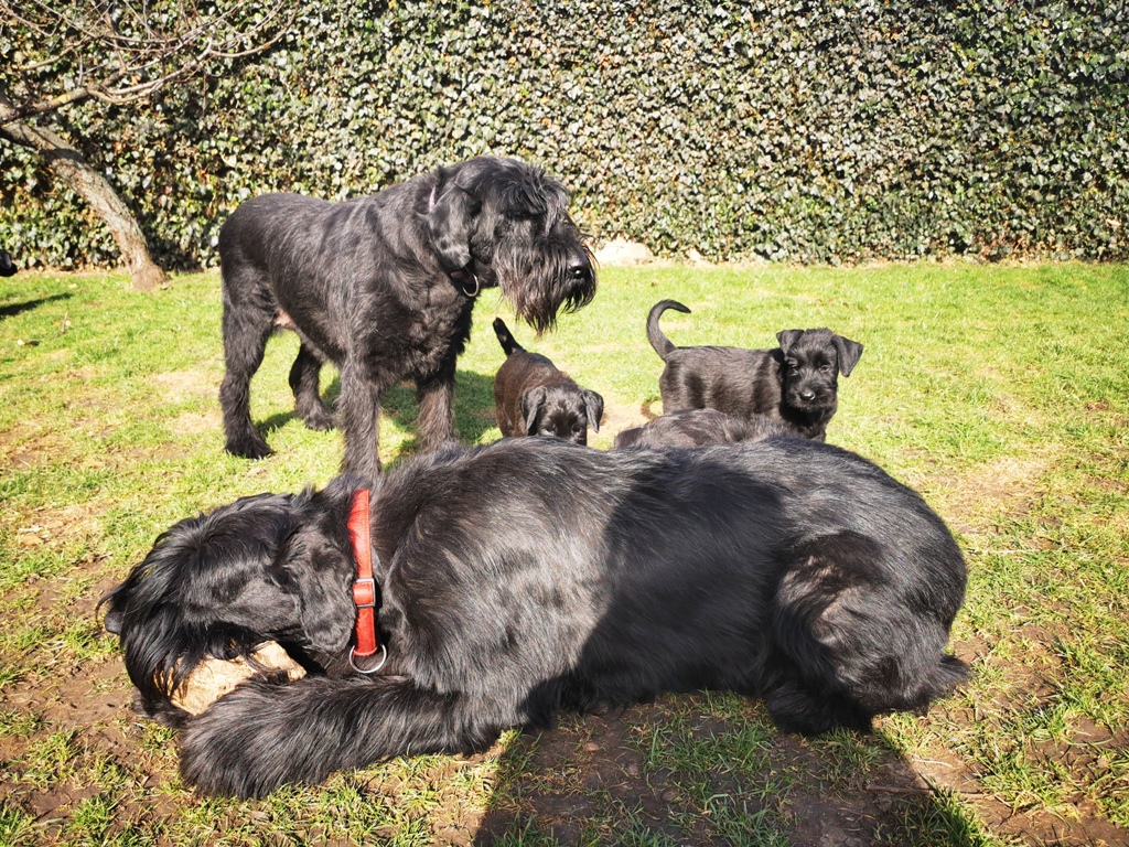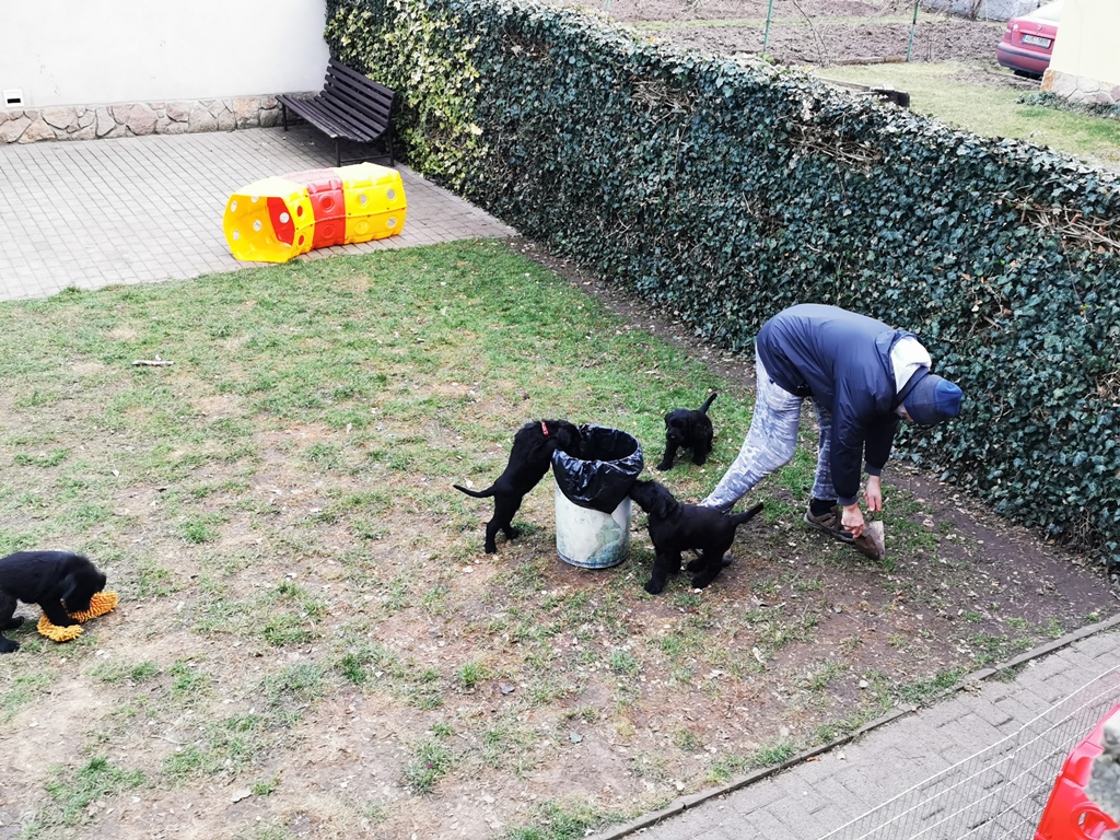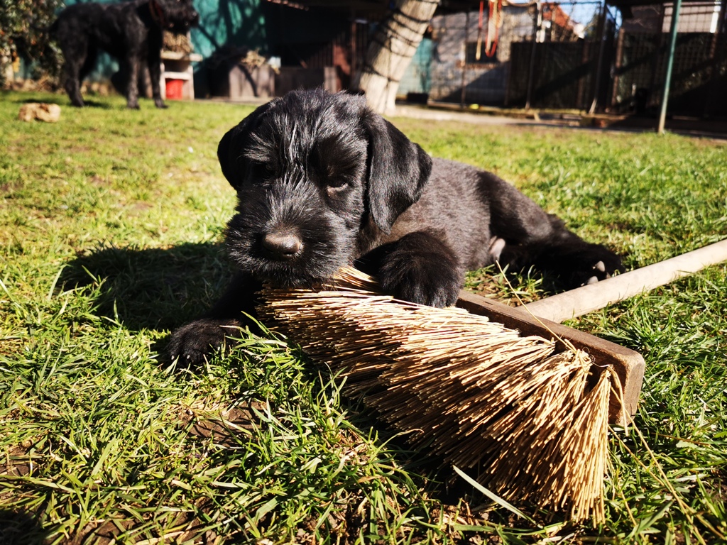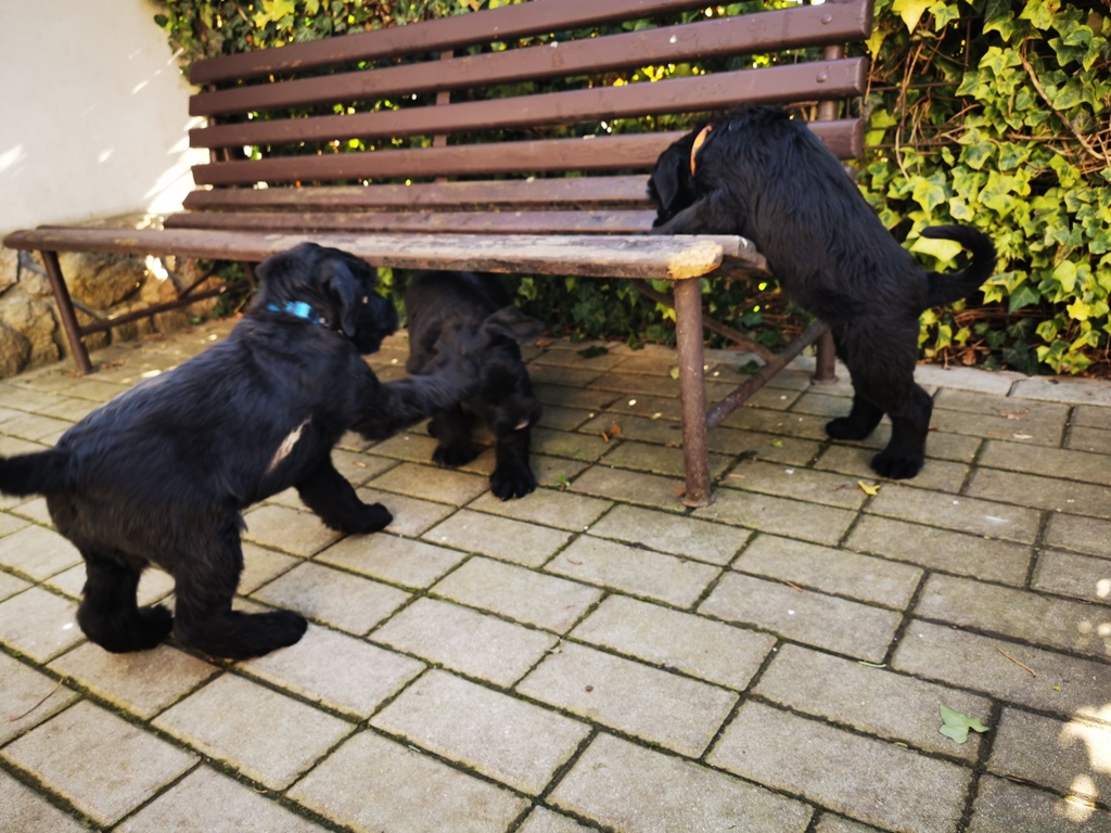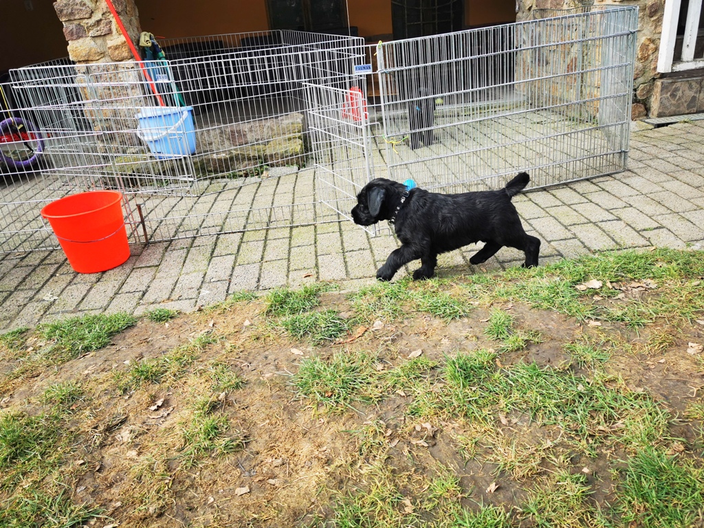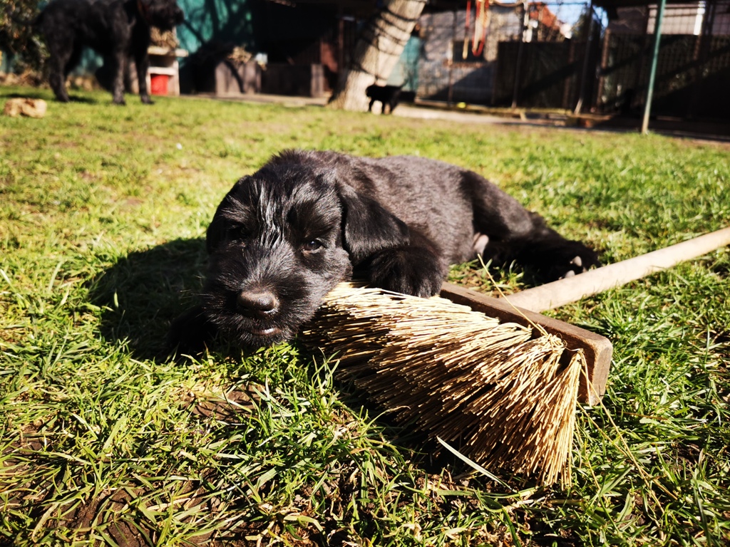 Štěňátka velkých černých kníračů už jsou v nových domovech.