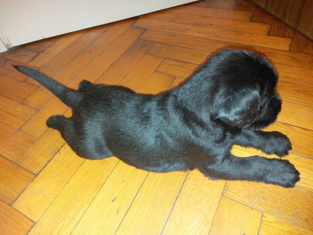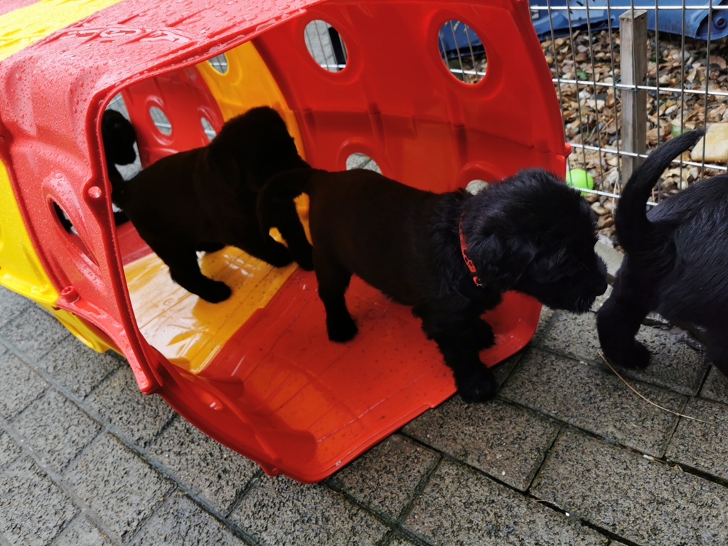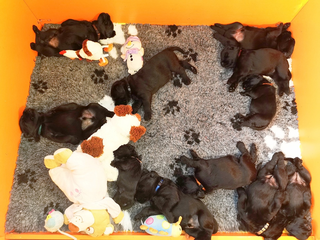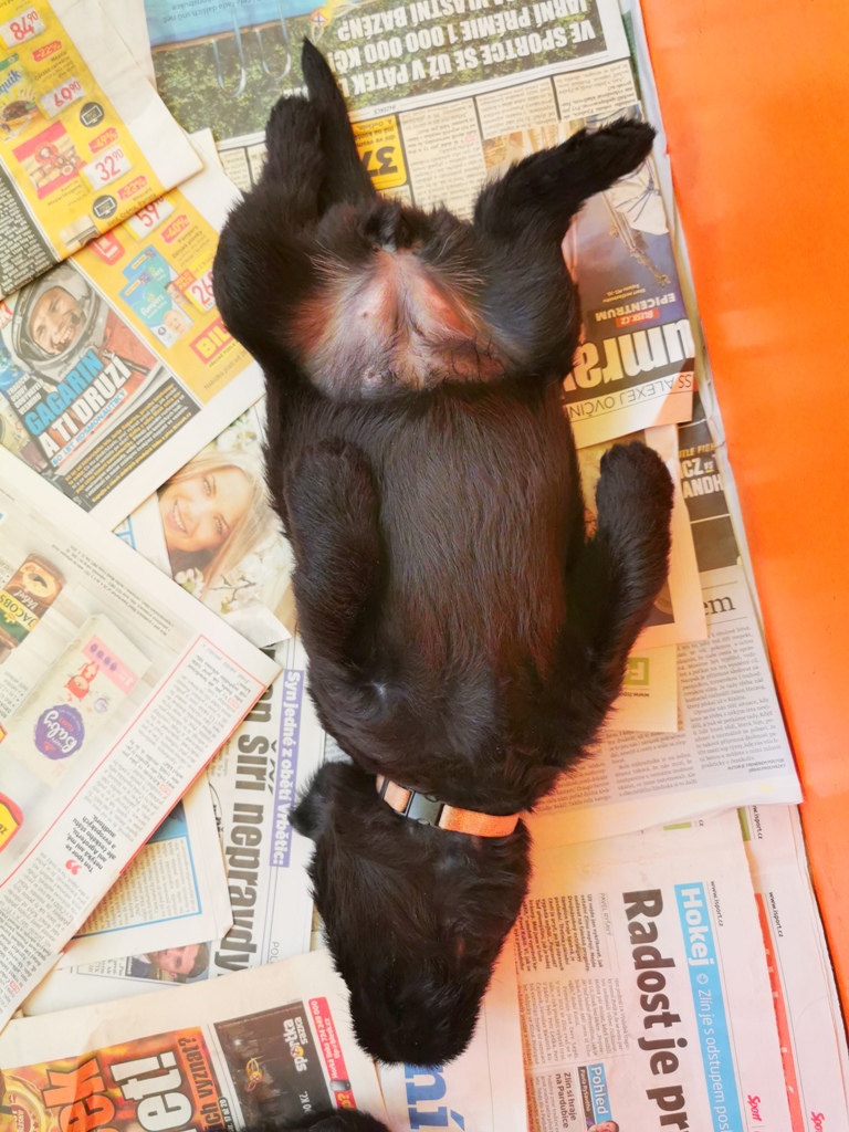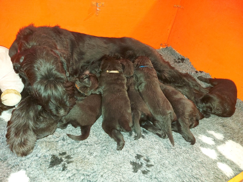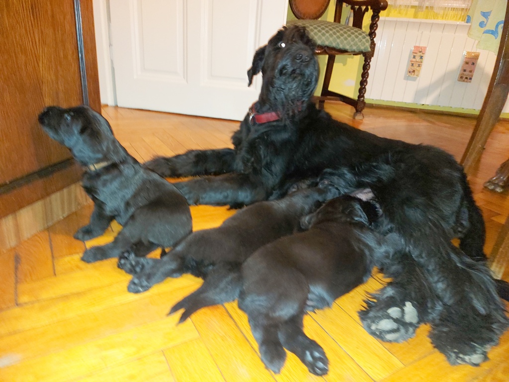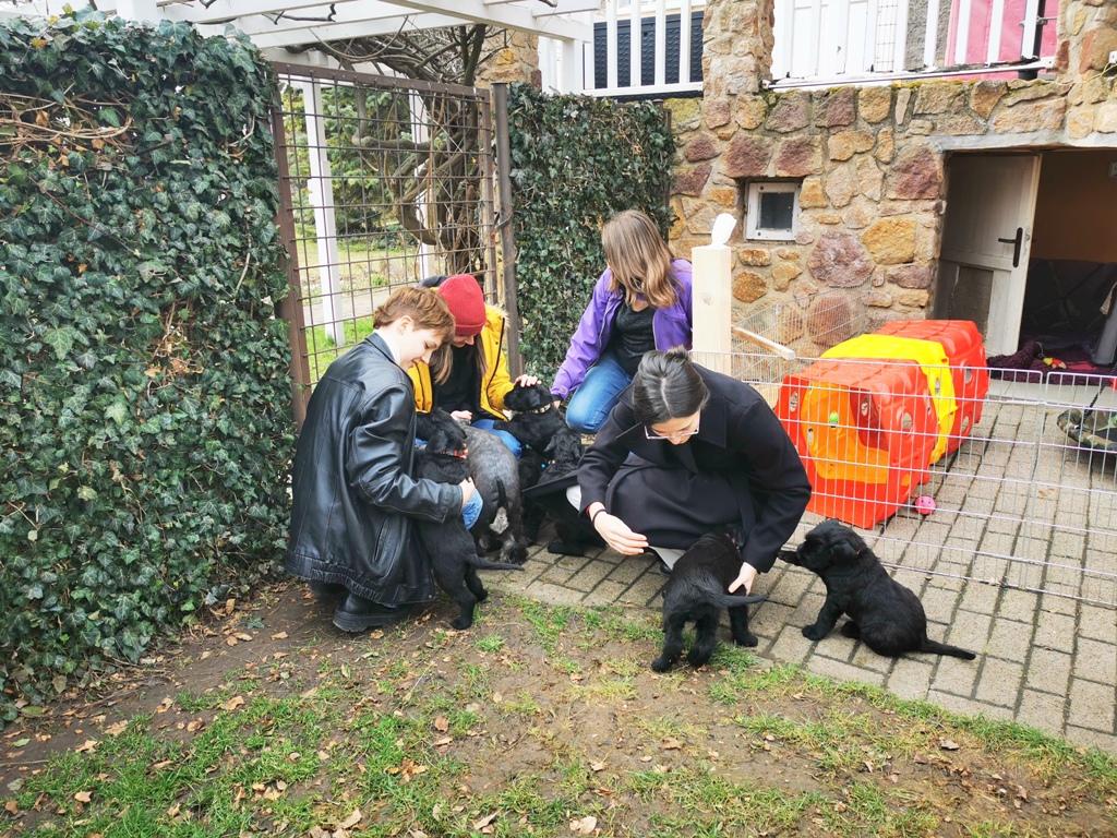 Štěňátka velkých černých kníračů už jsou v nových domovech.