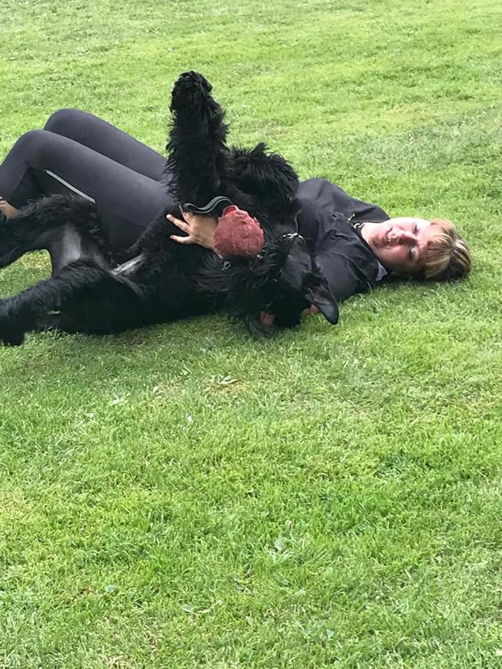 Show result: One year old female, excellent type, very nice head, good ears, perfect neck and shoulders, excellent top and down line, correct angles, excellent mount of tail, excellent character and handling, test for color - negative, JUDGE - Simon Oliver, Croatia (National Schnauzer Club Show)