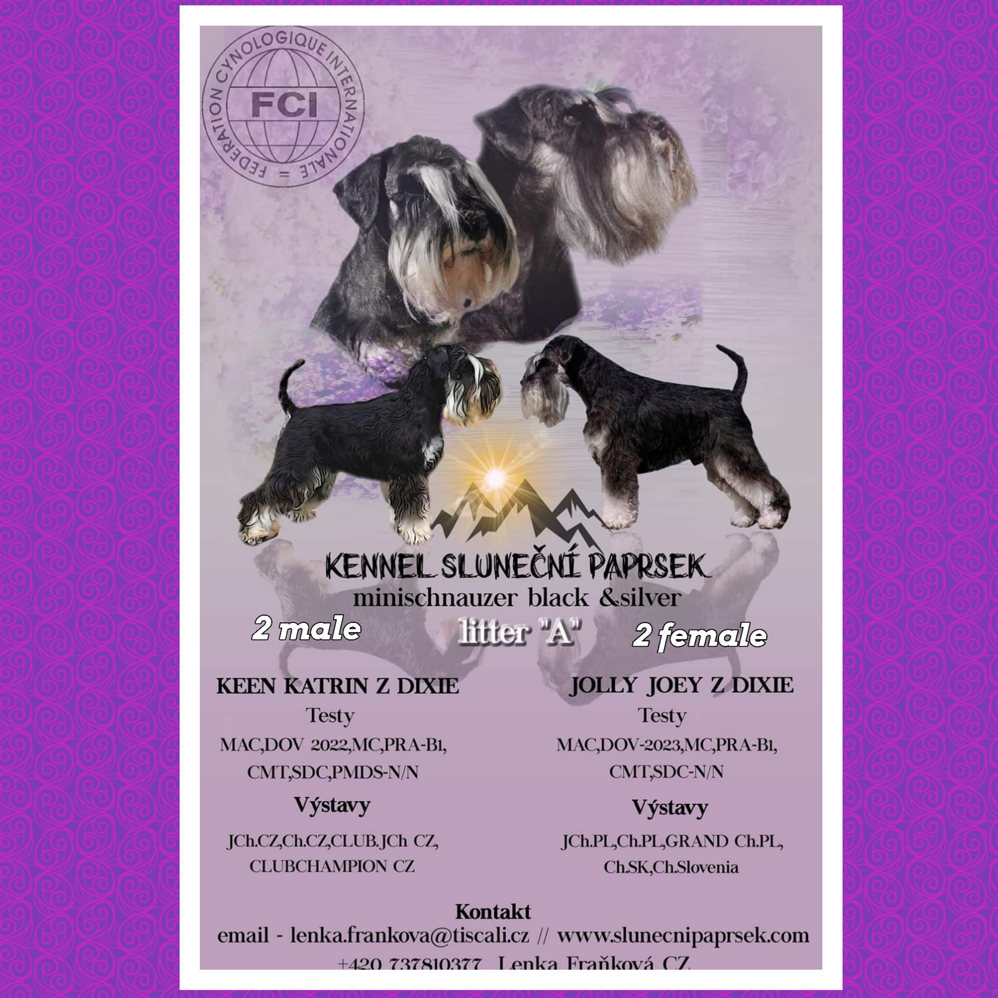 That's how they are in the world, on February 12, 2023, 4 males and 2 females were born. We are happy and look forward to making them as skillful and nice schnauzers as their parents and ancestors in the pedigree.